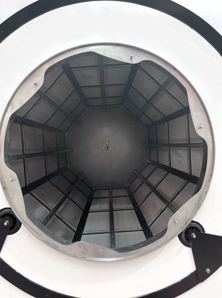 The innovative hexagonal structure simplifies mesh changes. In case of damage, there’s no need to replace the entire drum—only the affected section—reducing costs and maintenance time. This design also improves the agitation of plant material, accelerating the extraction process.