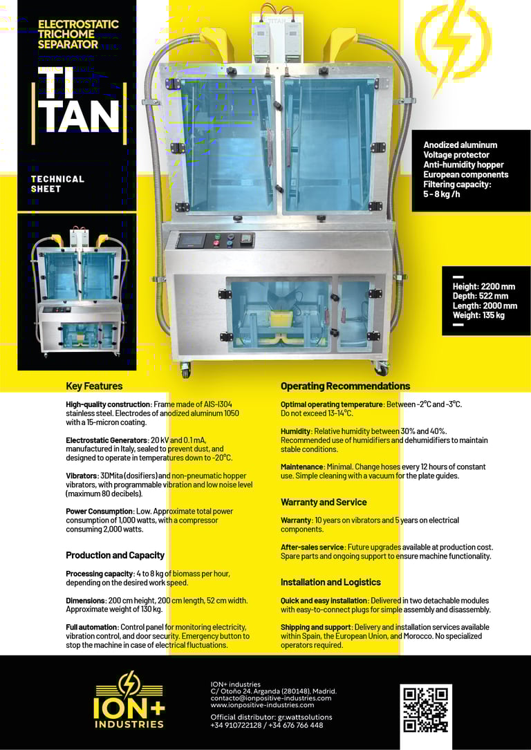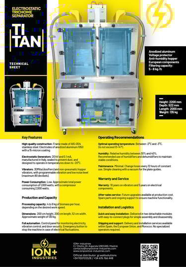 Frame made of AIS-I304 stainless steel. Electrodes of anodized aluminum 1050 with a 15-micron coating.