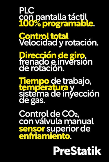 Durante cualquiera de los procesos, se puede utilizar un sistema de control de temperatura mediante una bombona de CO2, permitiendo mantener condiciones ideales para maximizar la eficiencia y la calidad del producto final.