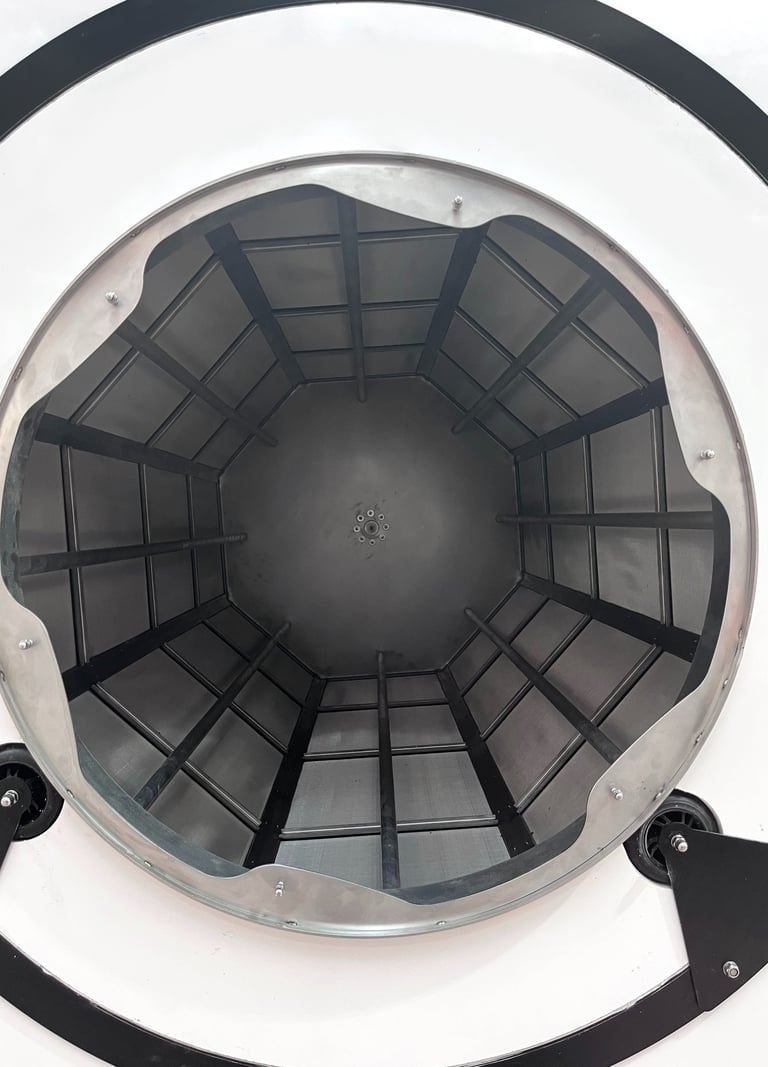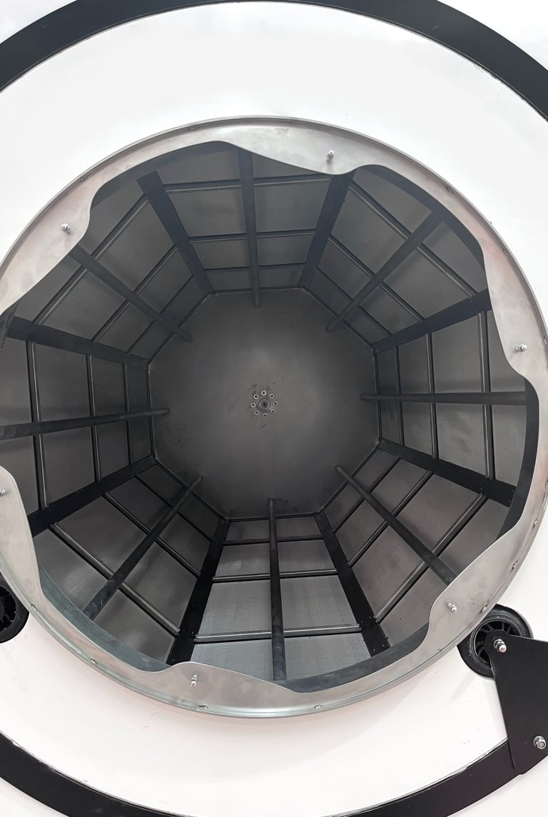 The innovative hexagonal structure simplifies mesh changes. In case of damage, there’s no need to replace the entire drum—only the affected section—reducing costs and maintenance time. This design also improves the agitation of plant material, accelerating the extraction process.
